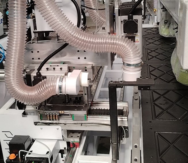 Сервоприводы обеспечивают точную подачу и позиционирование узлов. Идеальное качество кромки даже на радиусных участках и при работе с премиальными материалами. Есть узел снятия свесов – с мультиинструментом (R1 и R2), в отличие от аналогичных решений на рынке. А также: