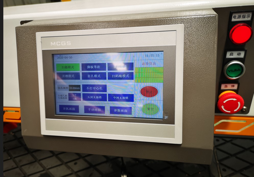 Поддерживает возможность установки до 2-х деталей на рабочий стол. Торцевое сверление выполняется автоматически в соответствии с позицией отверстия на верхней стороне с помощью лазерного индикатора. Поставляется со сканером для работы со штрих-кодами, адаптирован для работы с ПО Базис Мебельщик.