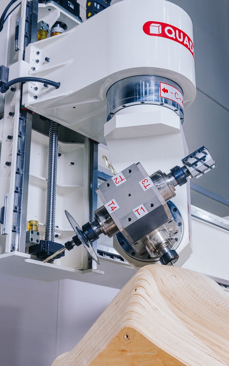 При использовании обрабатывающего пятиосевого центра технологическая цепочка значительно сокращается. QUADRO TEOS выполняет фрезерование заготовок, выборку пазов в ножках и поперечнике, формирует закруглённые шипы на заготовках, торцует ножки и царги, сверлит отверстия под шканты и торцует ножки будущего стула. То есть можно отказаться сразу от нескольких станков: качество и скорость изготовления повысятся. Возможности обрабатывающего пятиосевого центра не ограничены ничем, кроме фантазии технолога. Однооперационные станки не имеют такого преимущества, они предназначены для конкретных операций и работать без человека не могут. Нужен постоянный контроль и строгое соблюдение технологии.