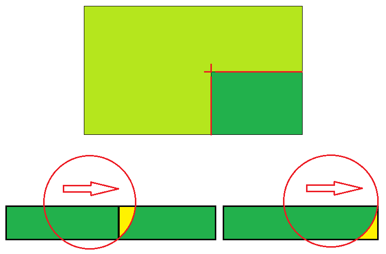 В этом случае, выход диска за пределы заданной длины реза недопустим, а значит, часть материала останется не допиленной. Чаще всего, такая проблема возникает при необходимости резки угла, и решается, как правило, ручной дорезкой, что, само собой, снижает производительность участка раскроя.