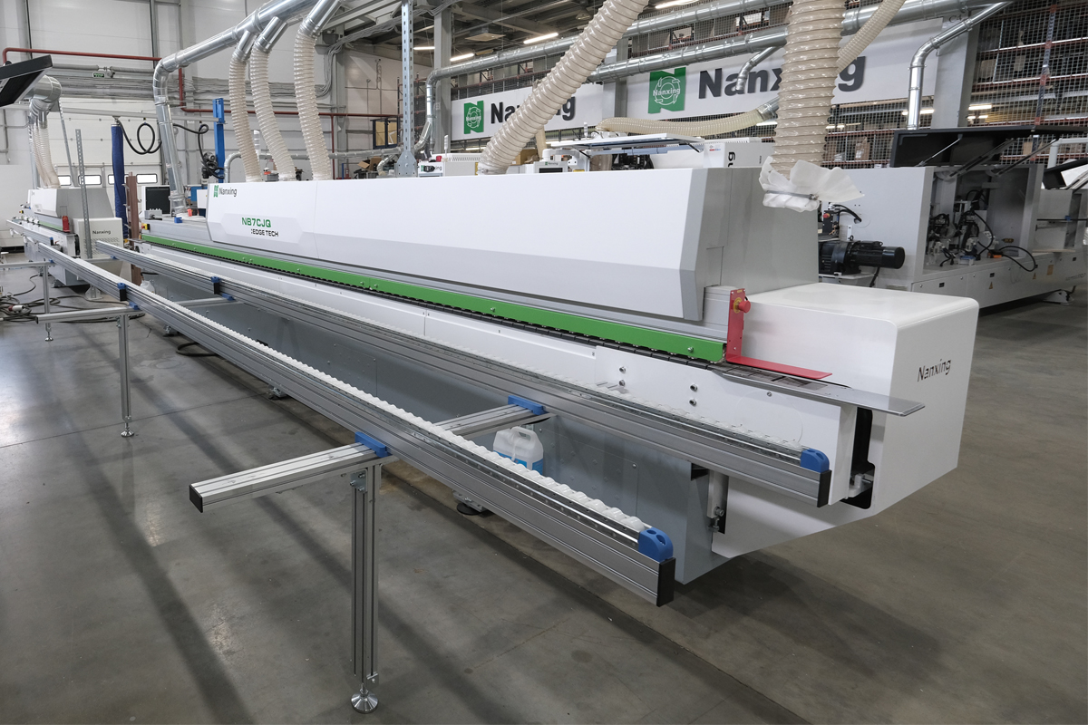 Автоматический кромкооблицовочный станок Nanxing NB7CJQVKL предназначен для облицовывания прямолинейных кромок плитных материалов рулонными кромками АБС, ПВХ и полосовым кромочным материалом толщиной до 3 мм.