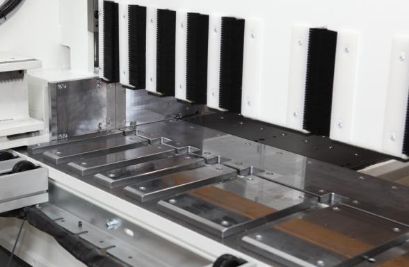 Такая схема сокращает время операции прижима до 20% и увеличивает производительность станка. Также боковой выравниватель SHARK не имеет ограничений в длине хода и минимальной толщине детали.