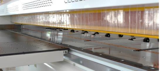 Стальной основной рабочий стол большой толщины гарантирует отсутствие прогибов и абсолютную ровность опорной поверхности. Поверхность стола полированная и позволяет перемещать пакеты заготовок без повреждения лицевых поверхностей.